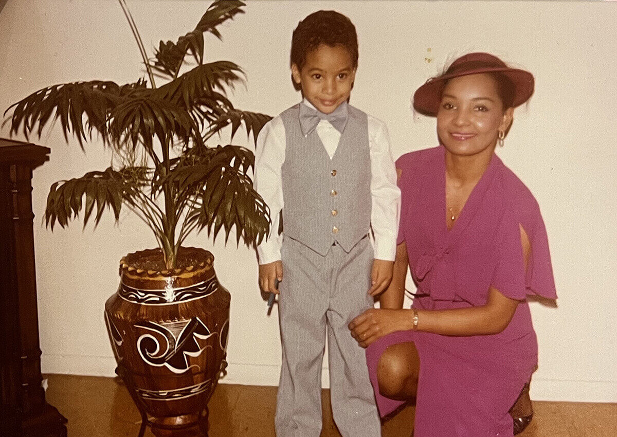 With his godmother at age 4