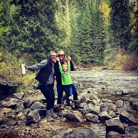 Jenny camping with her friend Katie and family.