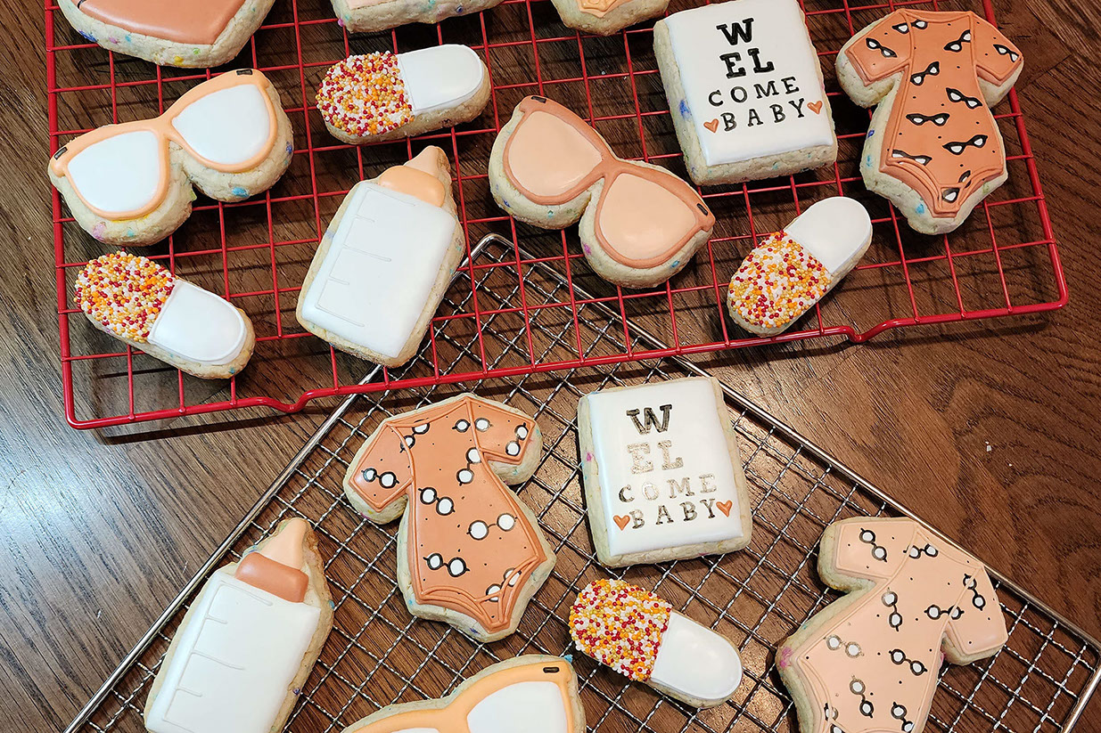 Kerri’s homemade optometry-themed “Welcome baby” cookies.